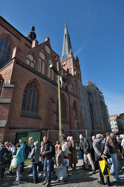 Caritas Archidiecezji Szczecińsko-Kamieńskiej w bazylice rozdawał święconki oraz paczki dla osób ubogich i bezdomnych. Święconkę Jakubową zorganizowano tam po raz ósmy.