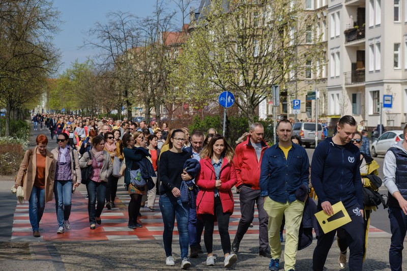 "Wielka Środa Dla Nauczycieli" jest ogólnopolską akcją wspierającą pedagogów. Organizatorami są członkowie ruchu "Warszawscy Obywatele Kultury". Zachęcali osoby popierające strajk, aby wyszły na ulice i robiły zdjęcia oraz filmy, które zostaną opublikowane na portalach społecznościowych z oznaczeniem #WielkaŚrodaDlaNauczycieli. "W ten sposób symbolicznie, choćby na kwadrans, dołączmy do strajkujących nauczycielek i nauczycieli" - mówili. Wspierający protest szczecinianie przeszli z placu Grunwaldzkiego na Jasne Błonia i z powrotem.