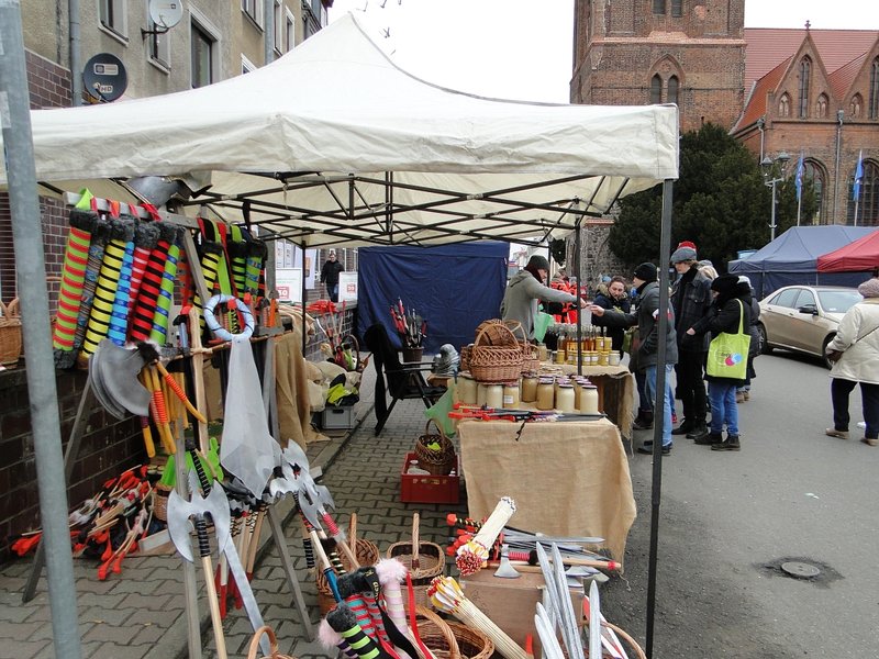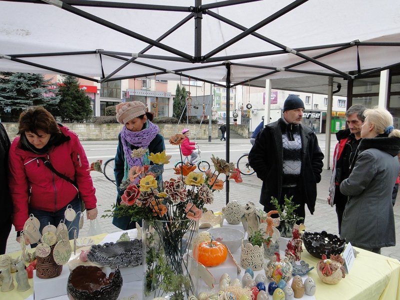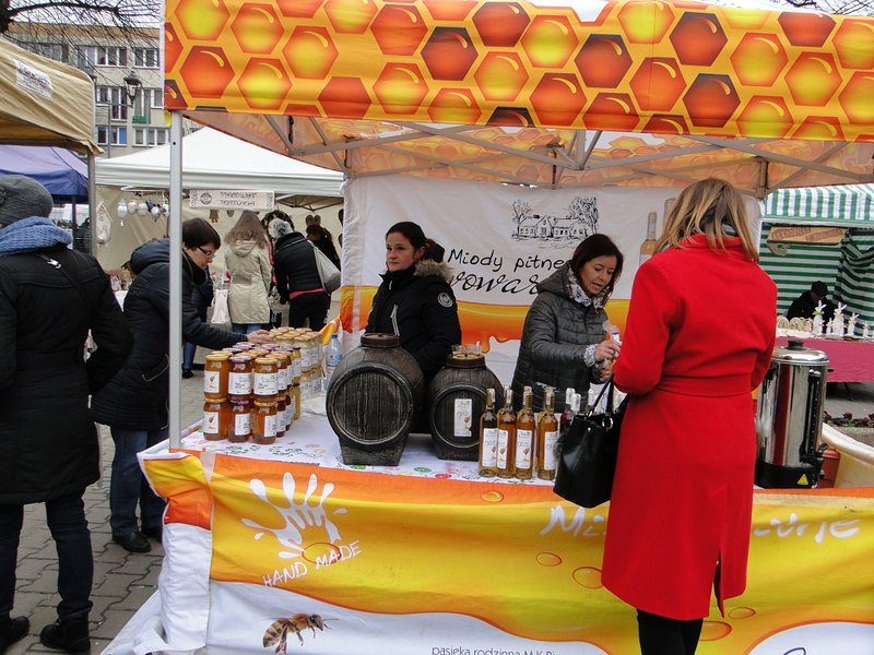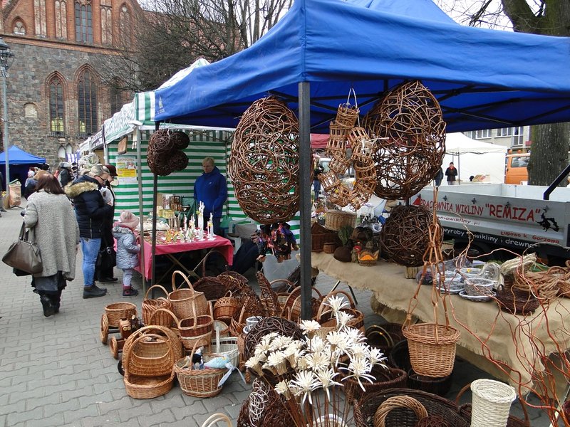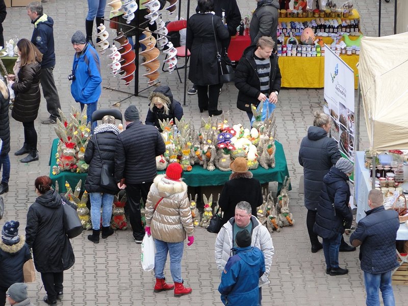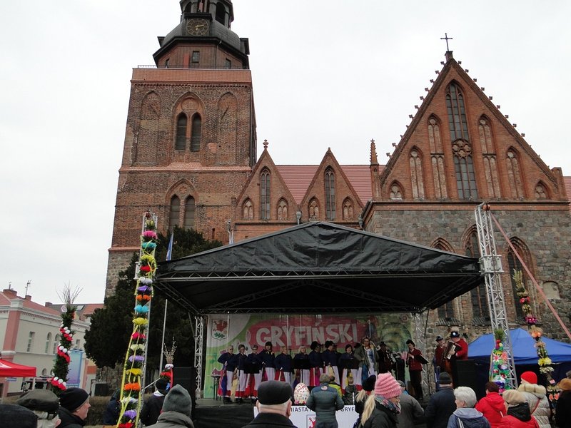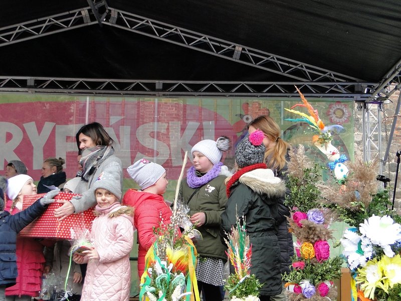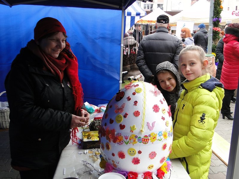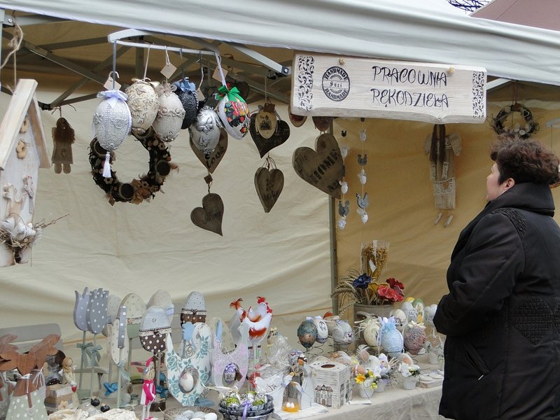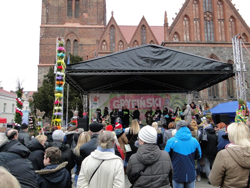 Podczas sobotniego (24 marca) wielkanocnego jarmarku na placu Barnima w Gryfinie chętni mogli kupić m.in. pisanki, kraszanki, stroiki świąteczne, ozdobne serwety i obrusy, palemki, wonne świece, koszyczki, wielkanocne słodkości, miody pitne i inne specjały.