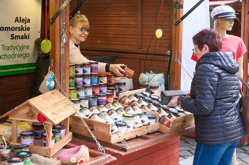 Na stoiskach rozstawionych na obu zamkowych dziedzińcach znaleźć można smakołyki na wielkanocny stół. Są chleby na zakwasie, miody i produkty pszczelarskie, domowe oleje tłoczone na zimno, ręcznie robione słodycze, ciasta, wędliny i sery. Nie brakuje też gotowych dań od Kół Gospodyń Wiejskich, takich jak żurek, bigos czy pasztety. Jednym z lokalnych hitów jest paprykarz szczeciński, który powraca w nowoczesnych wersjach – z łososiem, z warzywami lub w formie przetworów z regionalnych ryb.