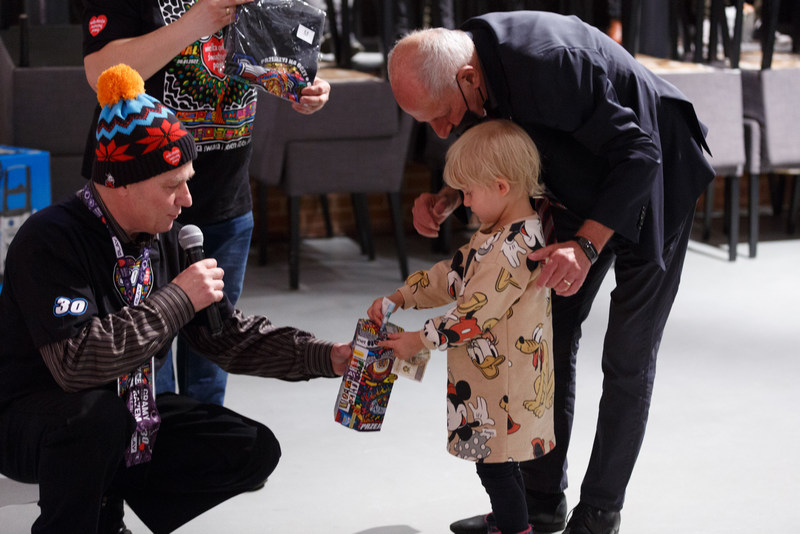 – Ta edycja jest zdecydowanie lepsza od poprzedniej. Rok temu byliśmy tutaj sami z kamerami, bez ludzi – mówi Robert Abelite, prowadzący licytacje Wielkiej Orkiestry Świątecznej Pomocy w Starej Rzeźni. – Ich obecność to najpiękniejsze, co nas spotkało w tym finale. Dzięki maseczkom i innym środkom ostrożności możemy się spotkać z nimi twarzą w twarz. Do Starej Rzeźni przyszły osoby młode, dorosłe, a także seniorzy. Nawet wczorajsza wichura ich nie przestraszyła.