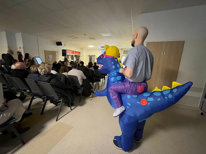 Całe tłumy ludzi w przychodni, w rejestracji, nawet maskotka granatowo-bordowa widoczna przy dzieciach w budynku przychodni czy przychdni szpitalnej. Straż i Ochotnicza Straż Pozżarna w środku widać na zdjęciach, a sezon grypowy w natarciu i nie przeszkadza orkiestrze. Miłej zabawy zyczę zdjęcia od 20 poogladać.
