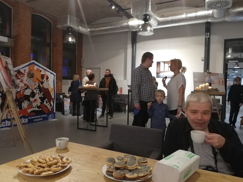 Wyjątkowy wieczór w Starej Rzeźni był okazją nie tylko do popularyzacji Kalendarza Schroniska 2020 oraz innych materiałów promujących zarówno adopcje jej podopiecznych, jak i program zapobiegania bezdomności zwierząt: plakatów, kubków, naklejek, odblasków i notesów, oczywiście z logo placówki. Ale również do licytacji wielkoformatowych posterów z kadrami Anny Gardzińskiej. Unikatowych, bo przedstawiających także te psiaki i punkty na mapie miasta, które nie zmieściły się w oficjalnym wydawnictwie. Dochód z ich wernisażowej sprzedaży - w sumie ponad 2300 zł - zasili konto schroniska, umożliwiając zakup m.in. mokrej karmy, przysmaków, misek, obroży oraz żwirku, czyli wszystkiego co niezbędne dla polepszenia jakości życia psiaków i kociaków przebywających w miejscu, które jest przystankiem - oby jak najkrótszym - w drodze do nowych domów i kochających opiekunów.