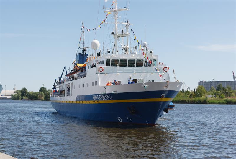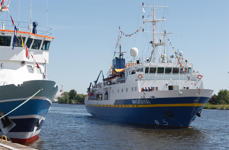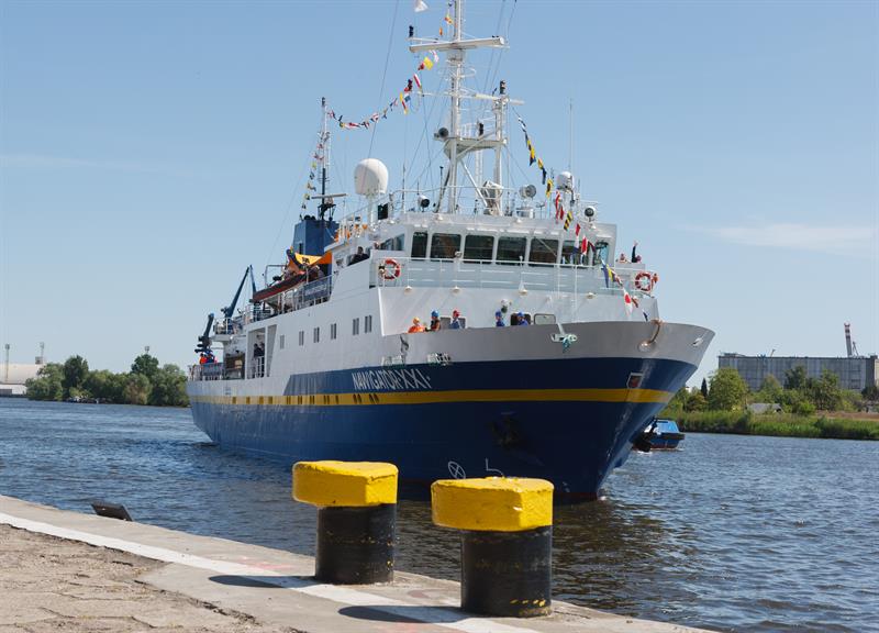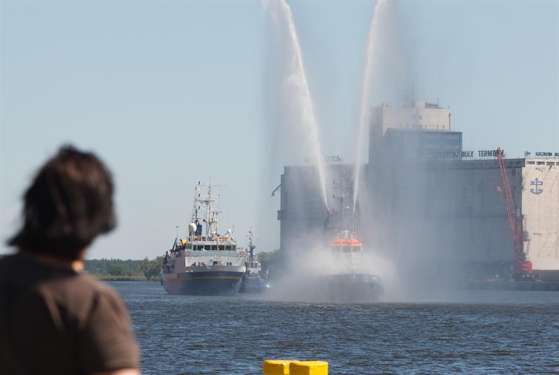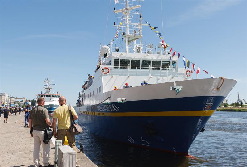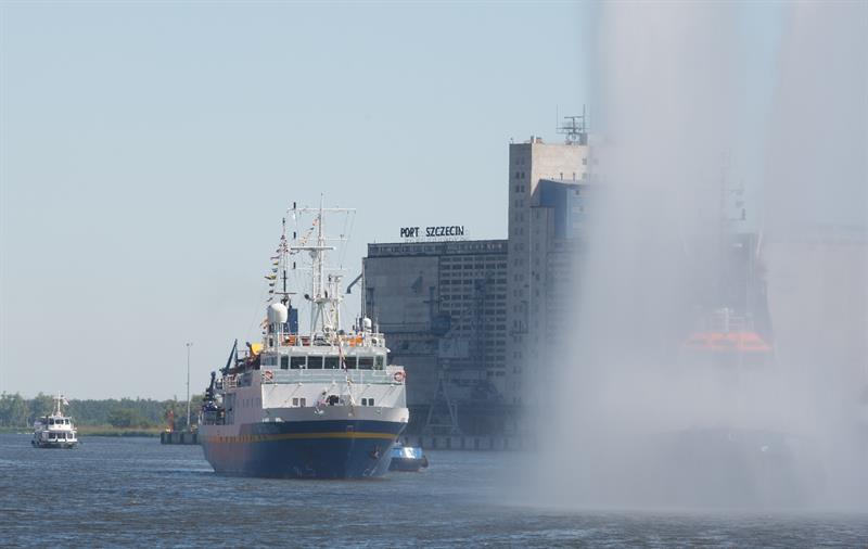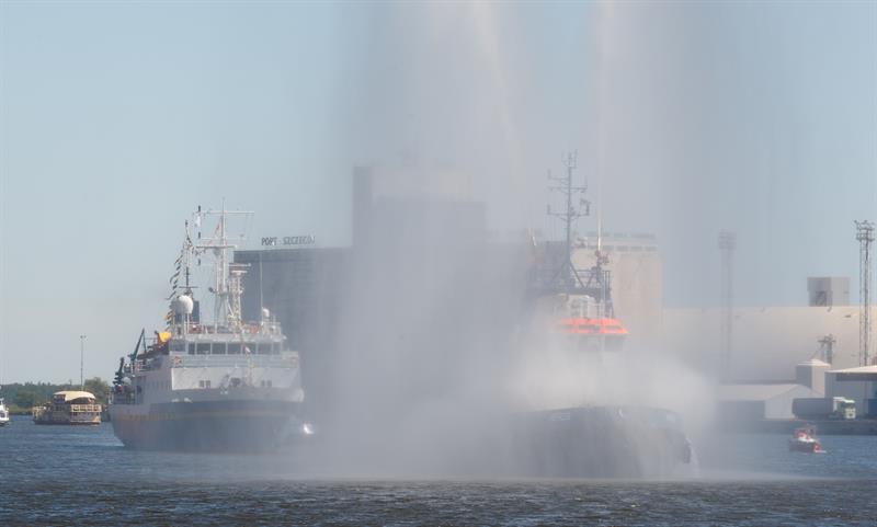 Wcześniej statek wszedł do portu w asyście holowników i zacumował u stóp Wałów Chrobrego. Minął stojący tam od wtorku „Horyzont II”, zaprzyjaźnioną jednostkę z Akademii Morskiej w Gdyni.