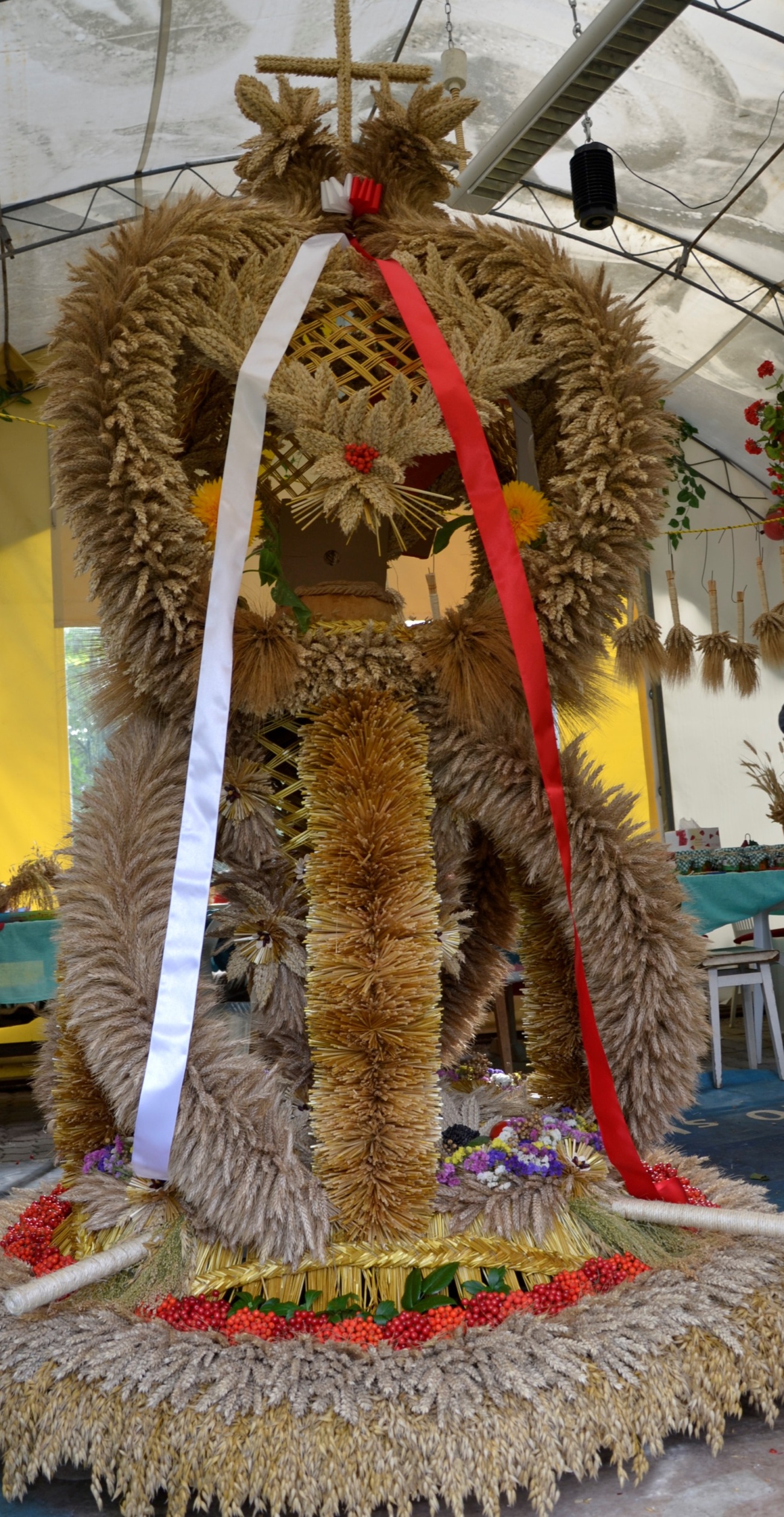 Tradycyjny wieniec dożynkowy - przyozdobiony świeżymi i zasuszonymi kwiatami, owocami, jarzębiną, dziką różą oraz kolorowymi wstążkami - będzie walczyć o nagrodę Prezydenta Rzeczypospolitej Polskiej w Spale. Kompozycję przygotowały panie z koła gospodyń wiejskich z sołectwa Niekłonice - informuje Urząd Marszałkowski.