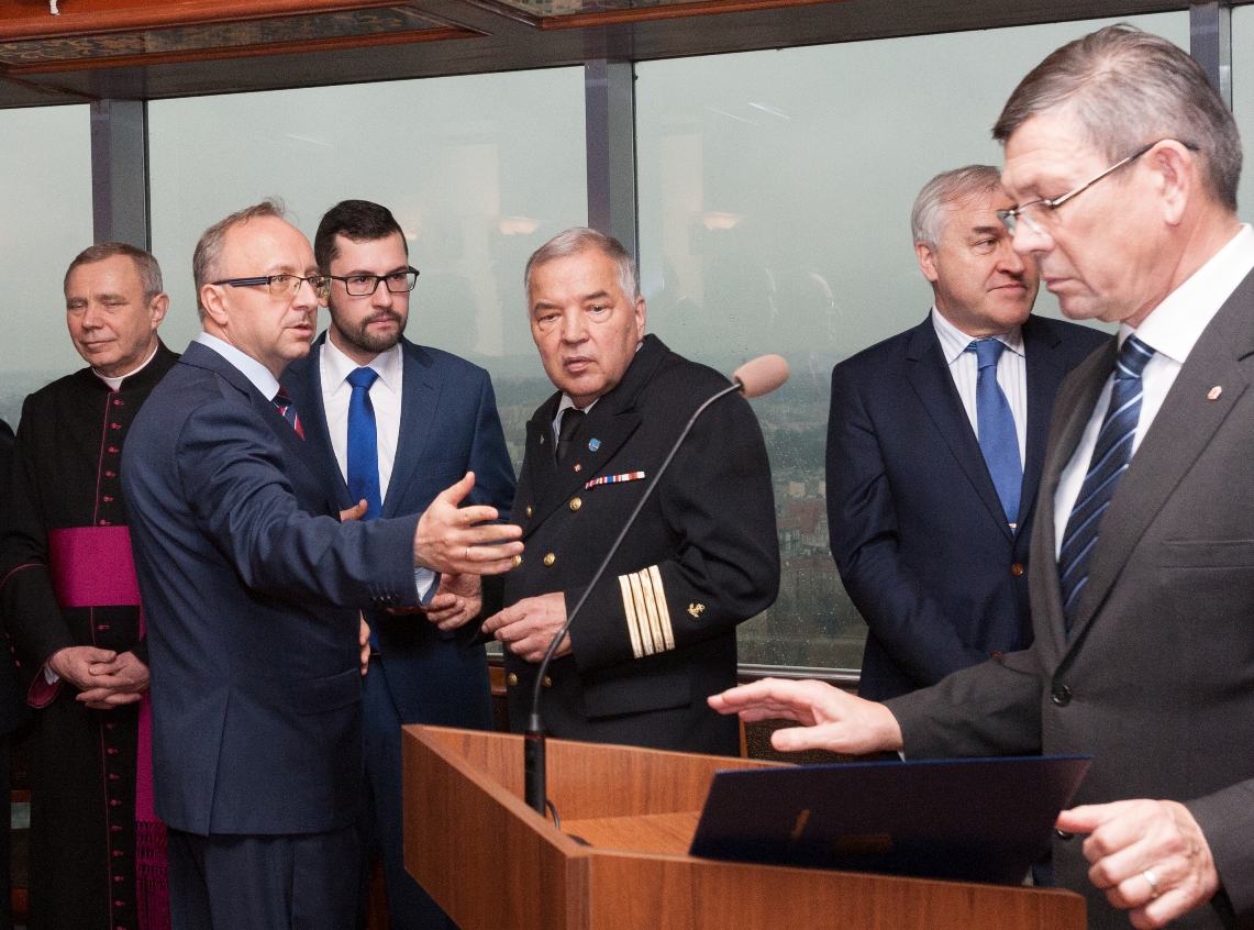 Przewodniczący Rady Pracowniczej PŻM kpt. ż.w. Mirosław Folta złożył życzenia również w imieniu Marka Gróbarczyka, ministra gospodarki morskiej i żeglugi śródlądowej.