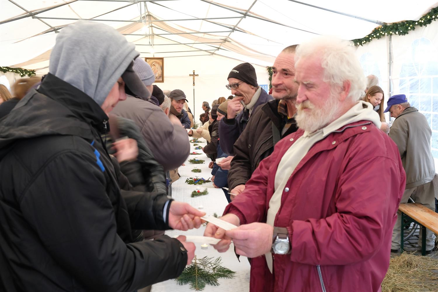 Na placu przy katedrze pw. św. Jakuba w Szczecinie odbyło się we worek (20 grudnia) spotkanie wigilijne dla osób samotnych, bezdomnych i ubogich. Życzenia złożył wszystkim ks. proboszcz Dariusz Knapik. Zebrani podzielili się opłatkiem, śpiewali kolędy, czekał na nich także świąteczny poczęstunek oraz paczki.