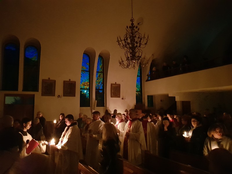 Uroczysta Wigilia Paschalna u kołobrzeskich franciszkanów z obrzędem poświęcenia ognia i odnowieniem przyrzeczeń chrzcielnych rozpoczęła się o godz. 21.