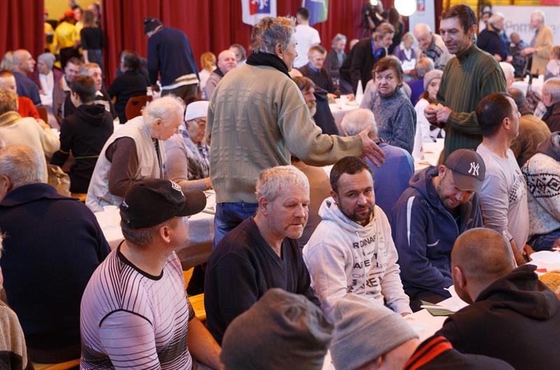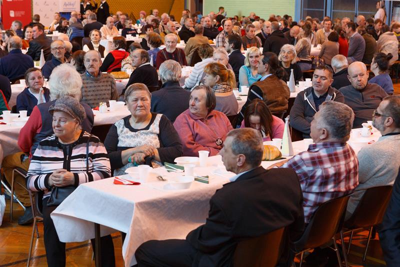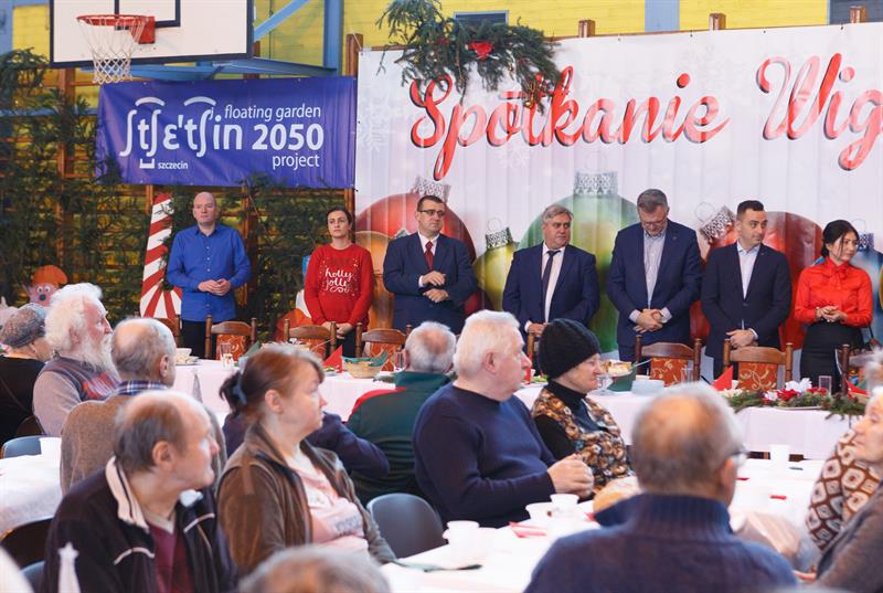 Spotkanie wigilijne dla osób bezdomnych, samotnych i starszych odbyło się w piątek (20 grudnia) w hali Zespołu Szkół nr 3 przy ul. Gen. Józefa Sowińskiego w Szczecinie. Do świątecznych stołów zasiadło czterystu gości. Życzenia złożyli im m. in. przedstawiciele władz miasta i województwa.