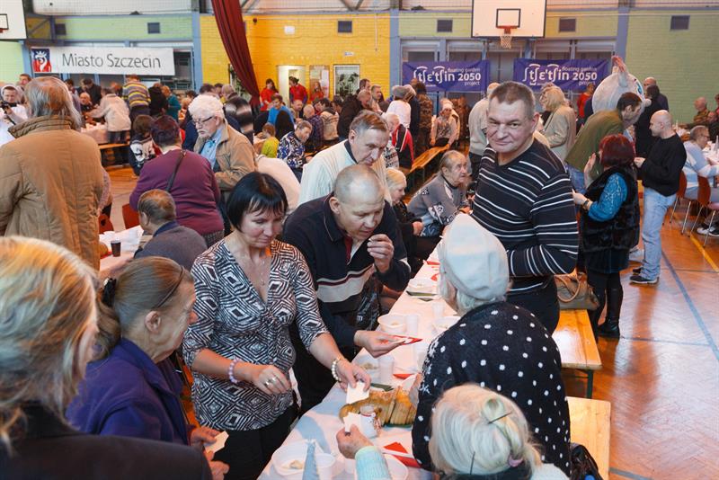 To uroczyste spotkanie zorganizowali wspólnie Dom Kultury Słowianin, Polski Czerwony Krzyż oraz Caritas, zapraszając na nie podopiecznych tych organizacji pomocowych, a także schronisk i noclegowni. Na stołach pojawiły się tradycyjne świąteczne potrawy i ciasta przygotowane przez szczecińskich restauratorów - był barszcz, pierogi, ryba w galarecie, śledzie, kluski z makiem. Każdy z gości otrzymał też paczkę żywnościową. W obsługę wydarzenia włączyło się stu wolontariuszy, m.in. z Zespołu Szkół Ogólnokształcących nr 4, z Technikum Ekonomicznego, a także strażniczki miejskie. Takie opłatkowe spotkanie jest organizowane w Szczecinie co roku.