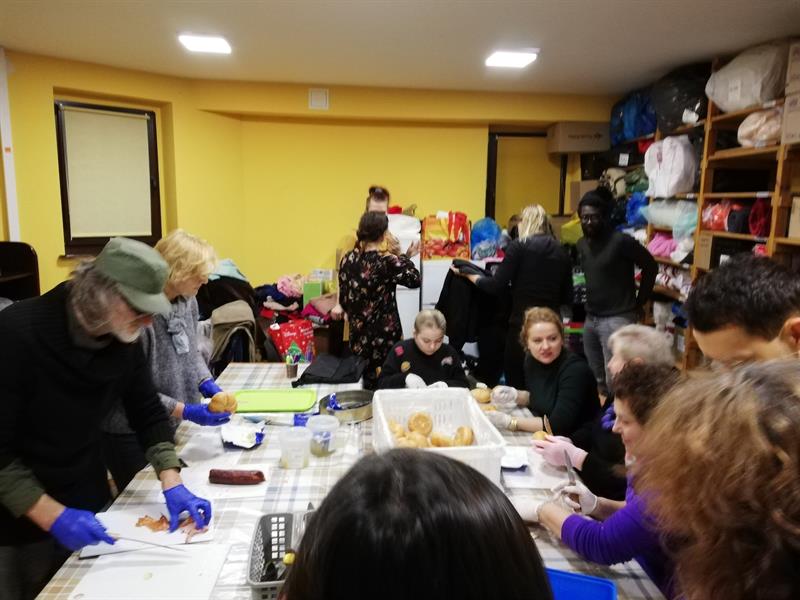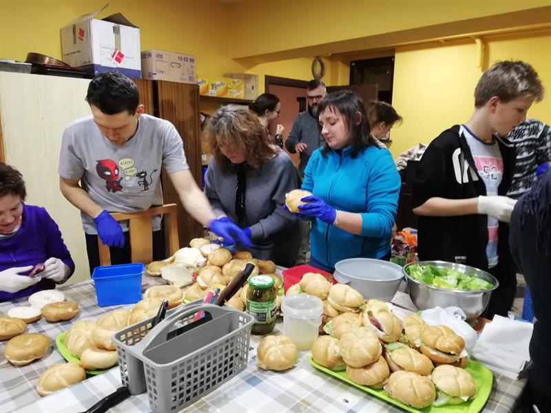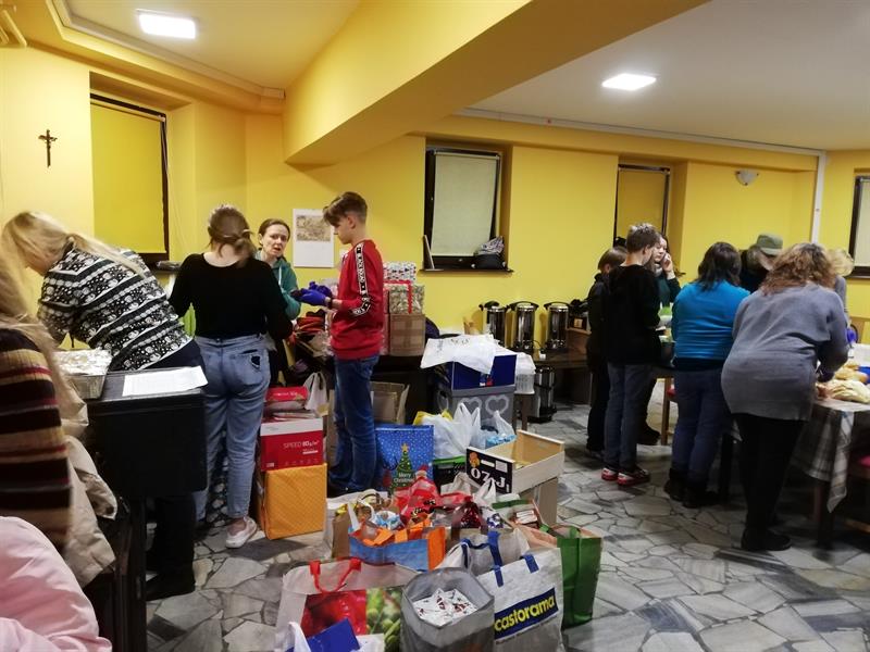 W czwartek przed spotkaniem, w Manufakturze Dobra przy pl. Ofiar Katynia, gdzie wolontariusze szykują kanapki, ruch był znacznie większy niż zwykle. Długi korytarz zapełniał się podarunkami. Tak się złożyło, że jeden z pomysłodawców i organizatorów spotkań, Robert Grabowski, obchodził urodziny. W mediach społecznościowych poprosił znajomych o konkretne prezenty - reklamówki z kawą, herbatą, konserwami, suchą kiełbasą, czekoladą, skarpetami. Bo takich paczek na wigilijne „Spotkanie przy zupie” potrzebnych było aż 150. Otrzymał ich 500.
