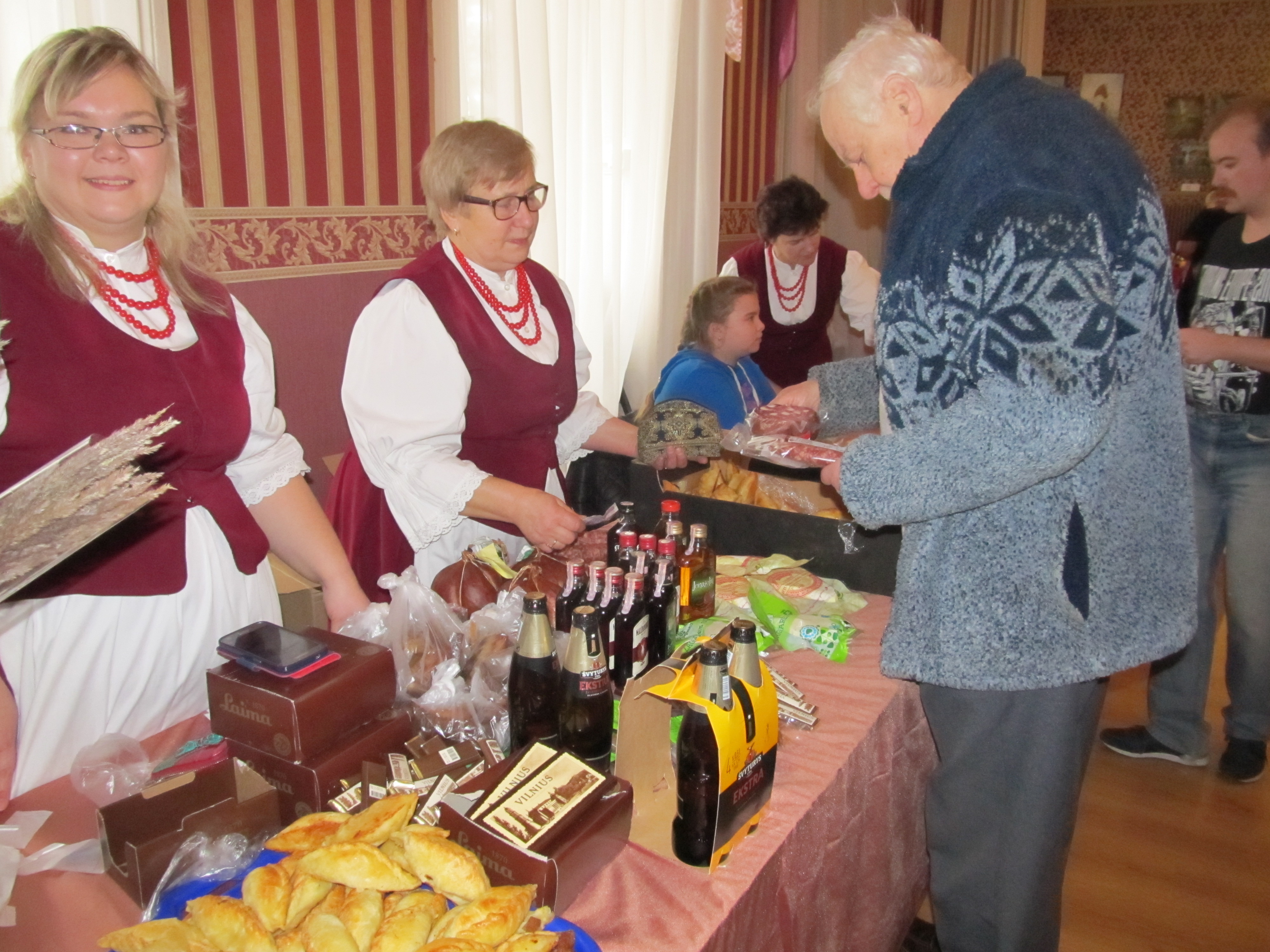 Litewskie kibiny, domowe suszone kiełbaski, twarogowe sery, kindziuki, czekolady oraz rozmaite nalewki owocowe przywiozły z wileńskiego Rudomina Leonarda Wanagiel i Beata Dołgopolowa (obie na zdjęciu) i wystawiły je w sobotnie przedpołudnie na kiermaszu w stargardzkim Domu Kultury Kolejarza.