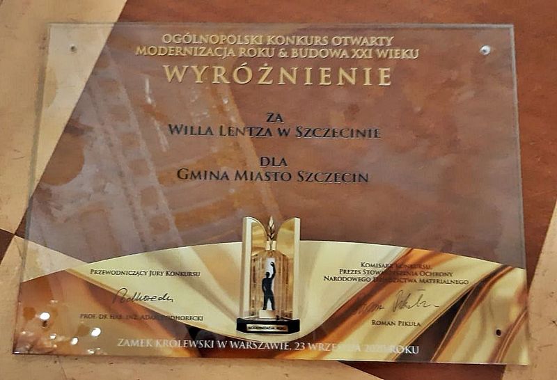 Zabytkowy i odrestaurowany budynek Willi Lentza, został wyróżniony w finale ogólnopolskiego konkursu budowlanego Modernizacja Roku – Edycja XXIV 2019.  A miasto, za realizację tej inwestycji, otrzymało również wyróżnienie dziennika "Rzeczpospolita".