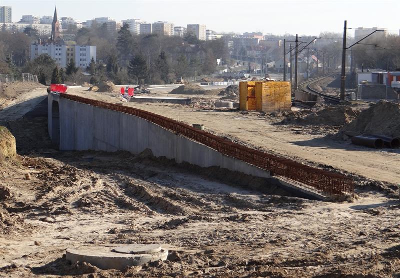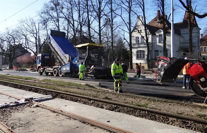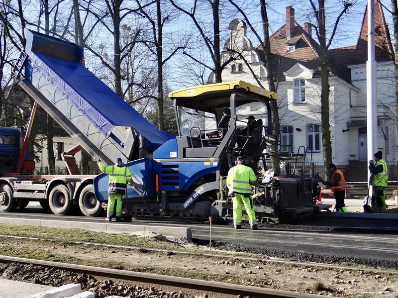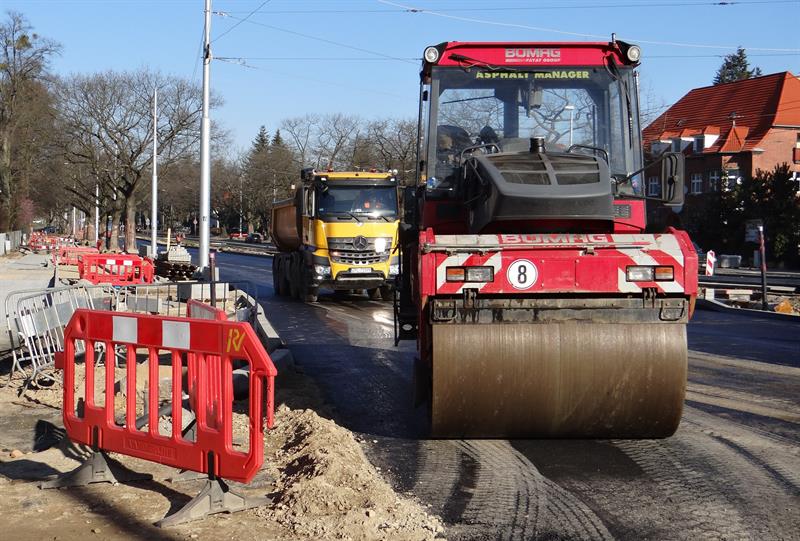Od dwóch dni w rejonie przyszłego węzła komunikacyjno-drogowo-kolejowego Łękno w Szczecinie trwa wylewanie pierwszych warstw asfaltu na wytyczonych po nowym śladzie dwóch odcinkach jezdni alei Wojska Polskiego w kierunku centrum. Tych między powstającymi tam równocześnie nowymi wiaduktami przyszłej trasy średnicowej. To nie są jedyne zmiany w krajobrazie na placu przebudowy od ledwie tygodnia, czyli od momentu wprowadzenia ostatnich zmian w organizacji ruchu.