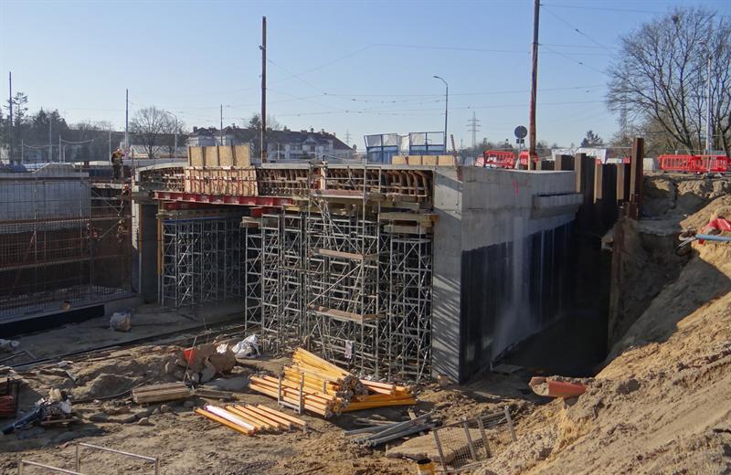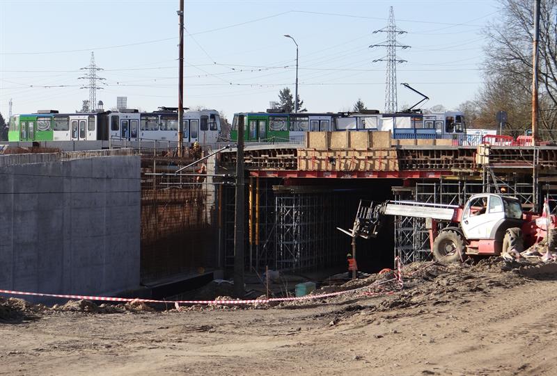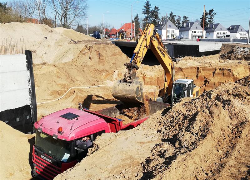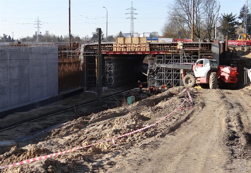 Po blokadzie w minioną środę prowizorycznego przesmyku w alei wzdłuż skarpy od strony jeszcze istniejącego (w oczekiwaniu na rozbiórkę) starego wiaduktu drogowego nad torami kolejowymi tuż przy skrzyżowaniu z ul. Traugutta i tam teraz już od kilku dni pracują koparki. Ładują urobek na wywrotki, szykując grunt i wykopy pod ciąg dalszy prac przy wznoszeniu kolejnej części konstrukcji nowego wiaduktu.