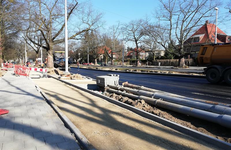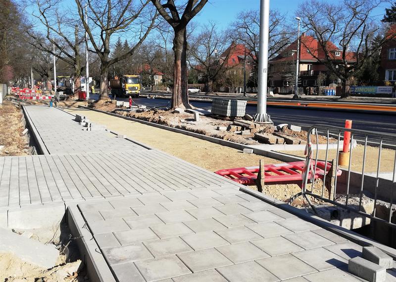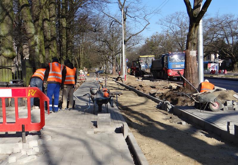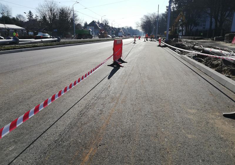 Chodzi o przebudowywane odcinki jezdni alei między skrzyżowaniami z ulicami Solskiego i Traugutta oraz od wysokości wjazdu na pobliską stację paliw do skrzyżowania z ul. Zaleskiego. Tym ostatnim po nowej nitce jezdni teraz poprowadzone jest tymczasowe przejście i dojście dla pieszych. Bo drogowcy przenieśli się z pracami w przyległy do nowej jezdni pas pobocza, gdzie teraz zaczną się rozbiórki i urządzanie na nowo fragmentu chodnika i ścieżki rowerowej. Prace brukarskie kontynuowane są na pasie chodnika w ul. Traugutta, jak również na przyległym do asfaltowanej właśnie jezdni poboczu w al. Wojska Polskiego między skrzyżowaniem ze wspomnianą ul. Traugutta do wysokości skrzyżowania z ul. Solskiego.