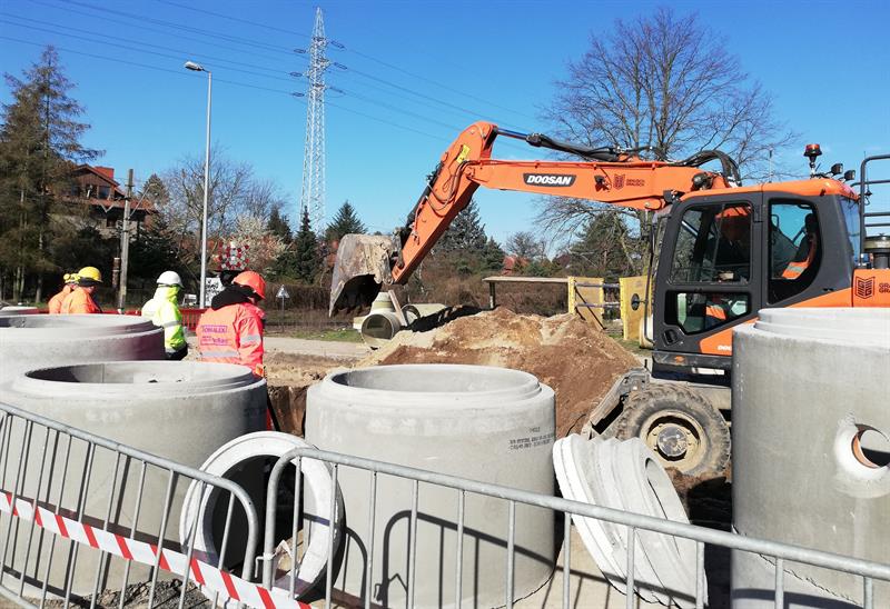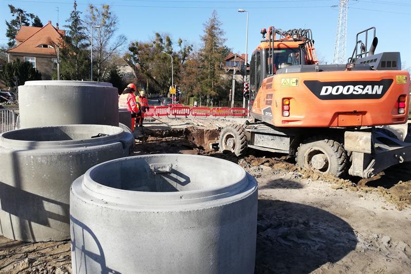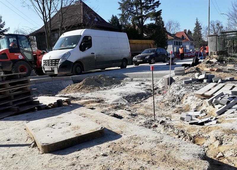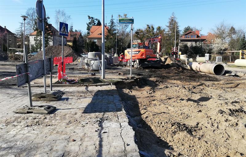 Sporo się też dzieje na całkowicie zamkniętym dla ruchu samochodów od tygodnia odcinku ul. Zaleskiego od przejazdu kolejowego do jej skrzyżowania z al. Wojska Polskiego. Tam na całej jej szerokości od zakrętu dotąd częściowo zdążyła zniknąć stara nawierzchnia i jej podbudowa, a na całej szerokości w pasie tuż przy przejeździe do skrzyżowania z ul. Leszczyńskiego prowadzone są wykopy pod nową kanalizację. W związku z inwestycją niemożliwy jest również wjazd w nią samochodami z ul. Spółdzielczej, która biegnie wzdłuż przyległego skweru im. Telesfora Badetko.