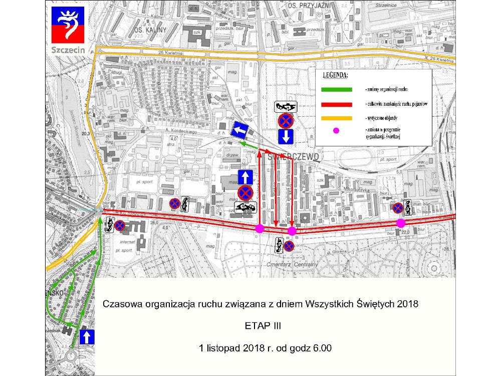 Uwaga: zakaz wjazdu nie dotyczy pojazdów biorących udział w ceremoniach pogrzebowych, tj. autokaru, samochodu osoby odprawiającej ceremonię pogrzebową oraz pięciu kolejnych, uczestniczących w kondukcie pogrzebowym.
