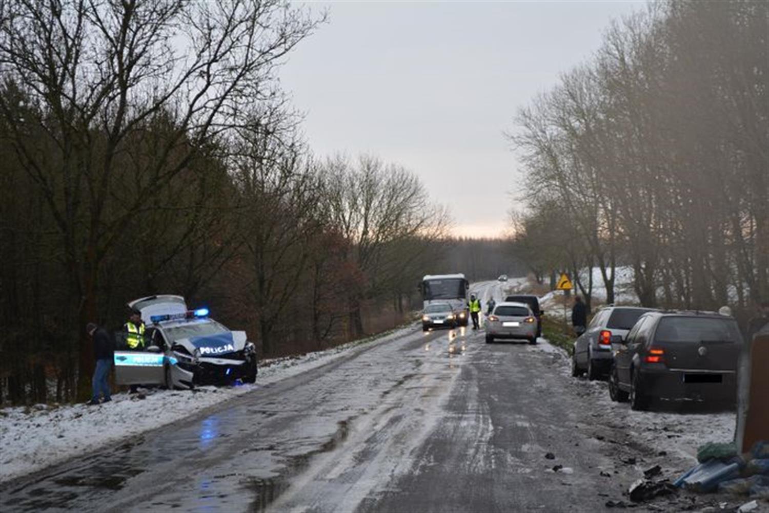 Do zdarzenia doszło w środę (18 stycznia) ok. godz. 9.40 na drodze między Pełczycami i Płotnem. Zaczęło się od kolizji volkswagena golfa z passatem. Ze wstępnych ustaleń policji wynika, że kierujący golfem nie dostosował prędkości do warunków panujących na drodze, nie zapanował nad pojazdem, który stracił przyczepność i uderzył w tył passata.
