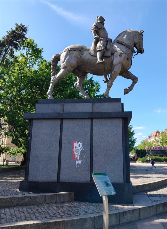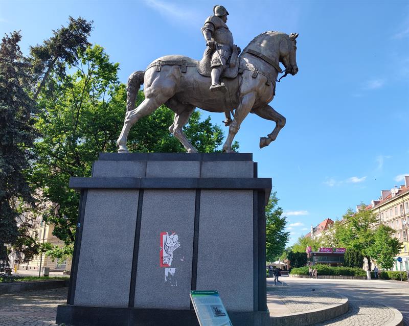 Pękały pod nim płyty. Niszczono jego oręż. Koń pod nim tracił ogon lub zyskiwał – pewnej Wielkanocy, w miejscu klejnotów – pisanki. Współczesne perypetie pomnika Colleoniego żywo przypominają sceny z filmów Barei. Tyle że w tym konkretnym przypadku nie o literacką fikcję chodzi, a o typowo polską historię z życia wziętą. Niestety. Jak teraz, gdy na cokole kondotiera pojawiły się sporych rozmiarów wklejki z przesłaniem: „Deweloperzy nie zbudują nam przyszłości”.