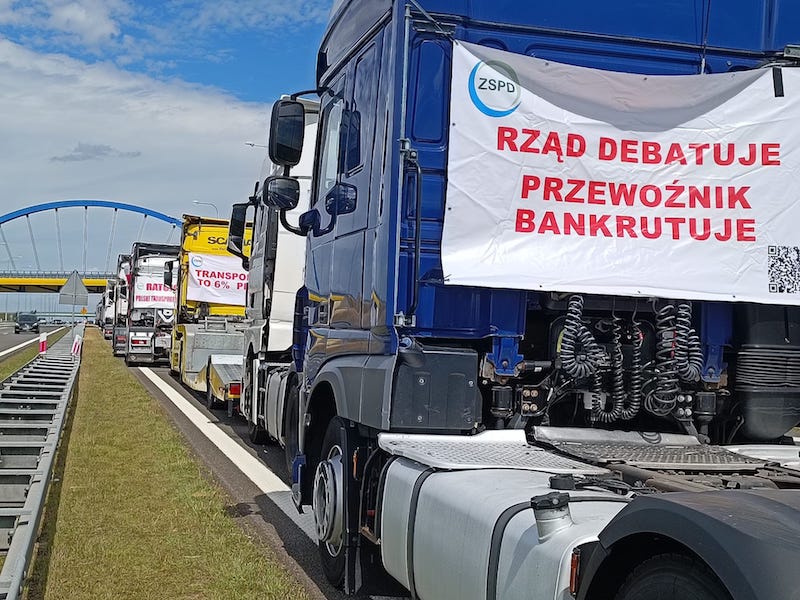 - Równolegle z blokadą na węźle Pyrzyce, nasi koledzy przewoźnicy protestują jeszcze w dwóch punktach kraju. Blokują przejazd w Kujawsko-Pomorskiem - DK 25, pod Bydgoszczą, na wysokości Koronowa, a także w Dolnośląskiem - przy skrzyżowaniu S5 z DW 340 - informował Piotr Krzyżankiewicz. - Za tydzień blokad będzie więcej. W naszym regionie można się ich spodziewać nie tylko w rejonie Pyrzyc, ale również Szczecina i Goleniowa. Podobne blokady protestujący przewoźnicy zamierzają ustawić w jeszcze sześciu kolejnych punktach na terenie kraju. To rząd zmusza nas do podjęcia takiej formy protestu. Oczekujemy realnego dialogu. Tymczasem nie rozmawia z nami ani minister infrastruktury, ani ministra rodziny, pracy i polityki społecznej. Nasze postulaty nadal pozostają niezrealizowane.
