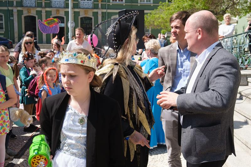 Jednocześnie prezydent podziękował uczestnikom, rodzicom dzieci i nauczycielom za przygotowanie wspaniałych strojów. Wydarzeniom pod Urzędem Miasta towarzyszył jeszcze trzy występy artystyczne, między innymi pokaz tańca zespołu Arabeska czy wykonanie piosenek Abby przez młodych wokalistów z Pałacu Młodzieży.