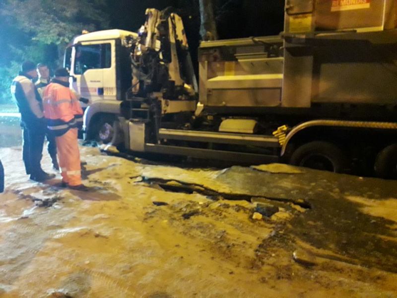 - Udało nam się skierować do mieszkań wodę z innego źródła - informuje Tomasz Makowski, rzecznik prasowy Zakładu Wodociągów i Kanalizacji. - W tej chwili trwa wydobywanie ciężarówki z zapadniętej jezdni, po czym przystąpimy do cięcia asfaltu i szukania dokładnego miejsca awarii.