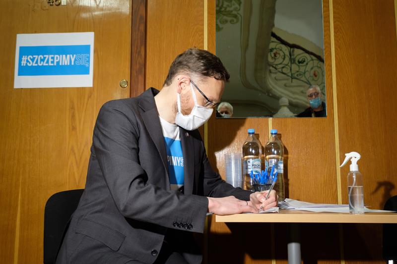 Zbigniew Bogucki przyjął dawkę przypominającą szczepionki w swoim gmachu. Fot. i film Dariusz Gorajski