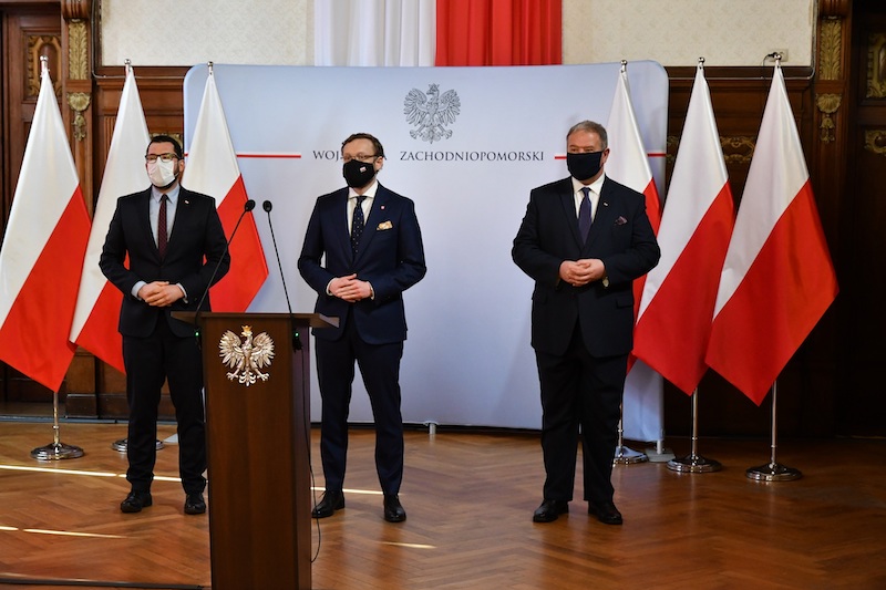 Wojewoda: "Rząd Prawa i Sprawiedliwości, mimo tych wszystkich olbrzymich gospodarczych trudności, które dotykają Polskę, Europę, świat, nie rezygnuje z inwestycji, nie rezygnuje z realizacji swoich zapowiedzi". Fot. Zachodniopomorski Urząd Wojewódzki