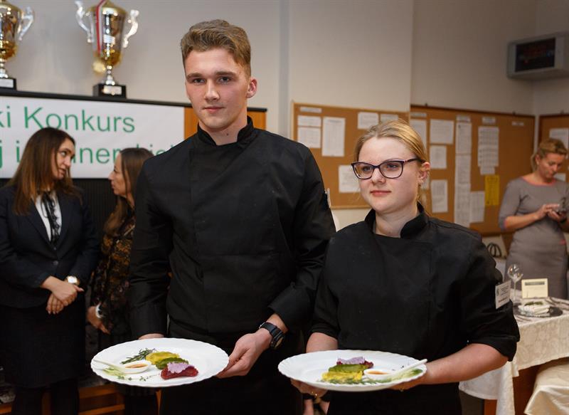 Wykonali je uczniowie Zespołu Szkół nr 1 w Koszalinie: Oktawia Rajewska i Tomasz Brach (na zdjęciu). Drugie miejsce zajęły pierogi z sandaczem z orzechami włoskimi w cieście pietruszkowym w sosie z dzikiej róży. Wykonały je Agata Sarna i Nikola Ochocka z ZS Ponadpodstawowych w Gryfinie. Trzecie miejsce przypadło buraczanym pierożkom z dynią i kasztanami jadalnymi, które przygotowały uczennice ZS6 w Szczecinie: Nikola Harmoza i Zuzanna Winnicka.