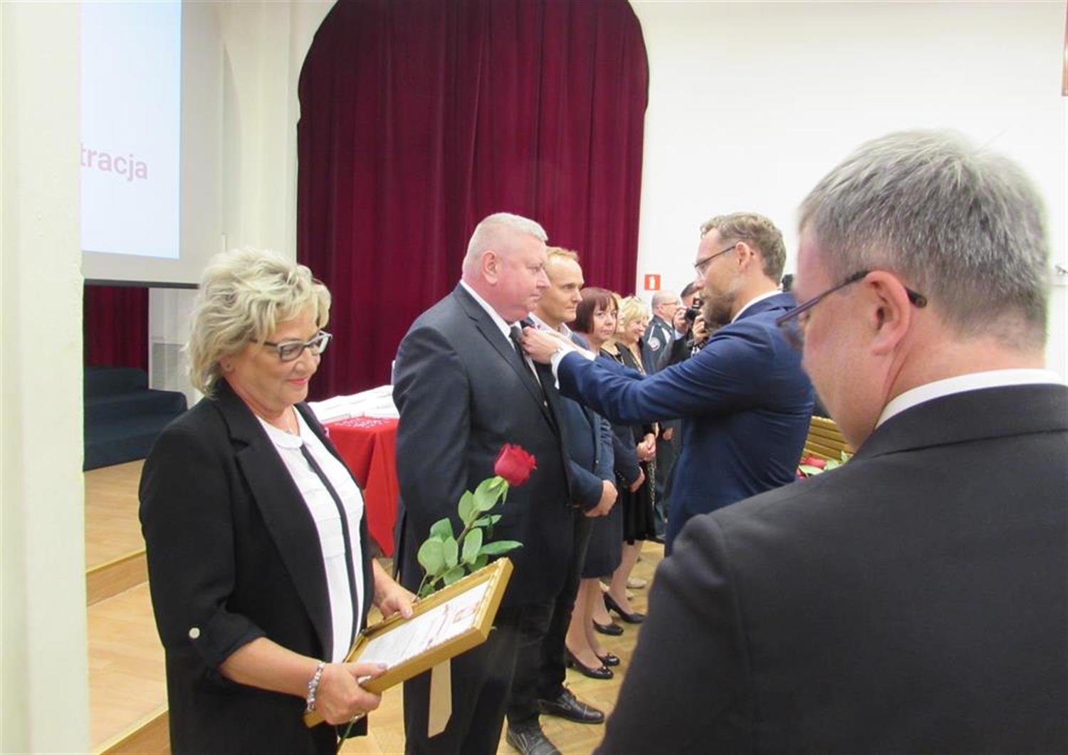 Medale złote i srebrne za długoletnią służbę, przyznane przez prezydenta RP, wręczył wojewoda Zbigniew Bogucki.