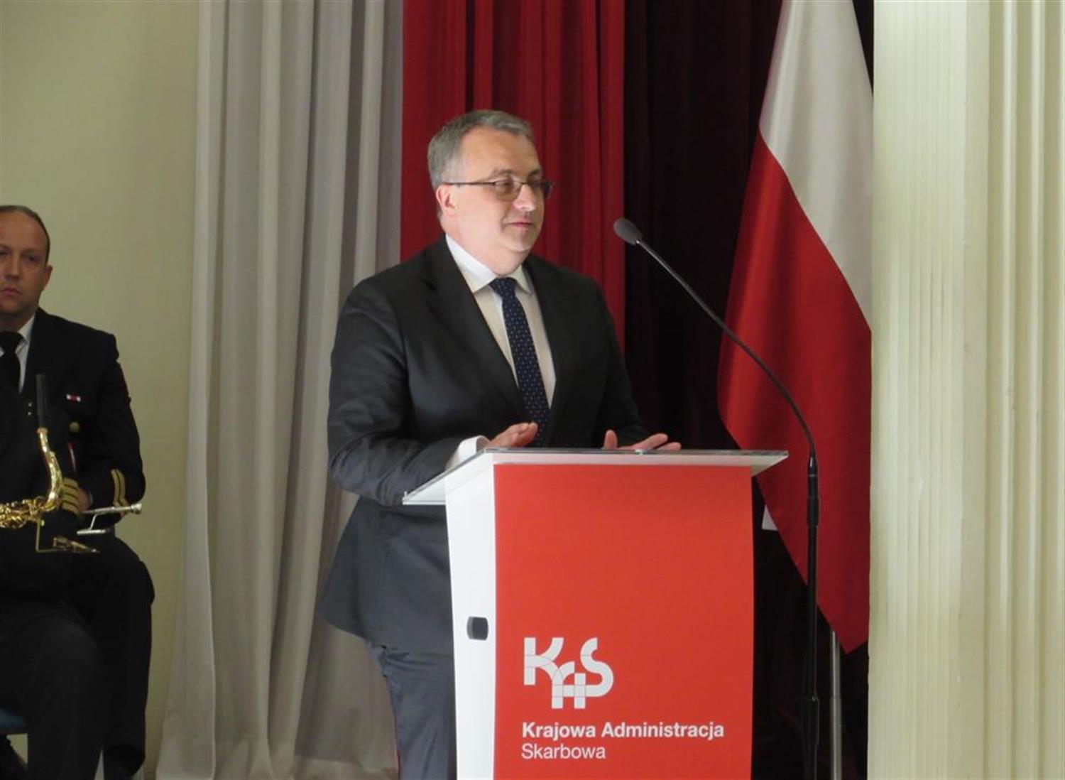 Arkadiusz Jedynak, dyrektor Departamentu Poboru Podatków w Ministerstwie Finansów, również złożył podziękowania oraz odczytał list od wiceministra Bartosza Zbaraszczuka, szefa Krajowej Administracji Skarbowej.
