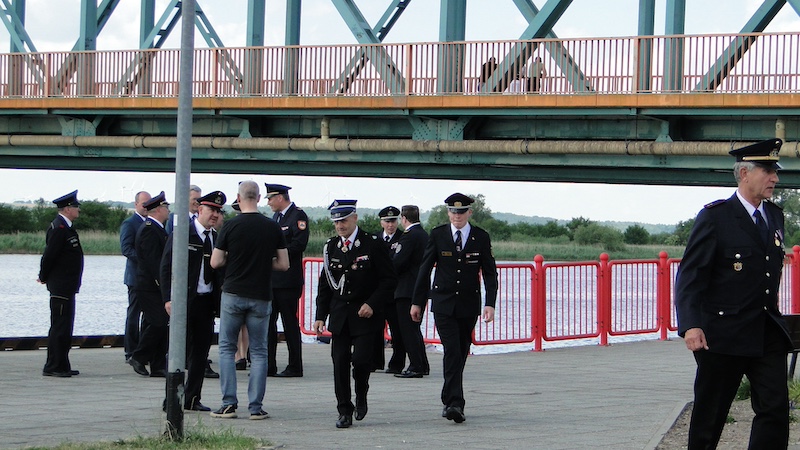 Po mszy św. odprawionej w intencji strażaków, uczestnicy obchodów przemaszerowali sprzed kościoła pw. Narodzenia NMP na miejscowe nabrzeże, gdzie miał miejsce uroczysty apel, podczas którego m.in. wręczono odznaczenia oraz awanse zasłużonym strażakom, a także sztandarom Komendy Wojewódzkiej PSP w Szczecinie oraz Komendy Powiatowej PSP w Gryfinie. Razem ze strażakami świętowała lokalna społeczność, dla której organizatorzy imprezy przygotowali atrakcyjny festyn.