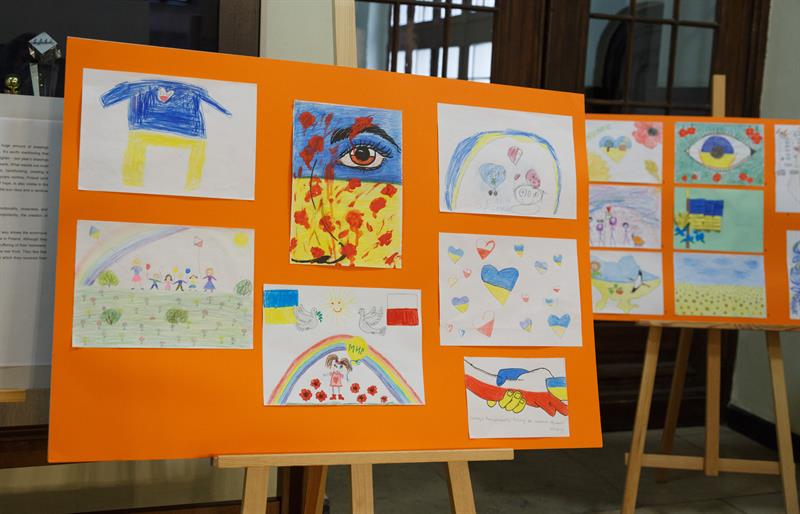 - Wystawa przedstawia, jak ważna w sytuacji wojny jest praca pedagoga z dzieckiem, odpowiadanie szczerze na jego wątpliwości, pracowanie nad negatywnymi emocjami i nienawiścią - mówią jej organizatorzy. - Otoczenie wsparciem nie tylko dzieci, ale również rodzin, które każdego dnia borykają się z trudnościami życia w nowym dla nich kraju, które każdego dnia odbierają z przerażeniem telefony z Ukrainy, obawiając się o życie swoich ojców, dziadków lub synów.