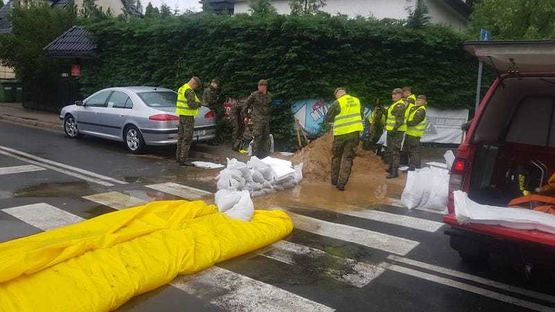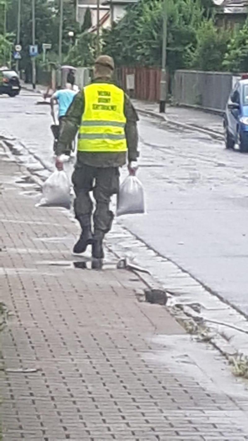 - Pierwsi żołnierze z Choszczna dotarli już na os. Samosierry w Szczecinie, gdzie dziś w nocy nikt nie spał. Zalane są garaże i piwnice. Terytorialsi pomagają mieszkańcom ratować dobytek, wyciągając sprzęt z zalanych pomieszczeń. Napełniają worki z piaskiem i układają je przed domami - mówi M. Górka.