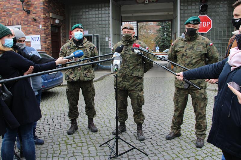 Oprócz komendanta szpitala, skalę zaangażowania wojska w walkę z pandemią Covid-19 w województwie zachodniopomorskim przedstawili w poniedziałek (9 listopada) p.o. dowódca 14. Zachodniopomorskiej Brygady Obrony Terytorialnej ppłk Mirosław Radwan i oficer prasowy 12. Szczecińskiej Dywizji Zmechanizowanej mjr Marcel Podhorodecki.