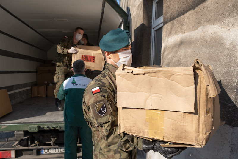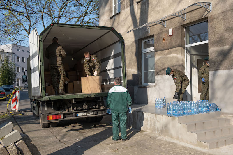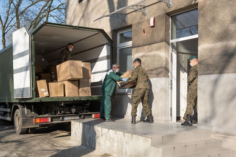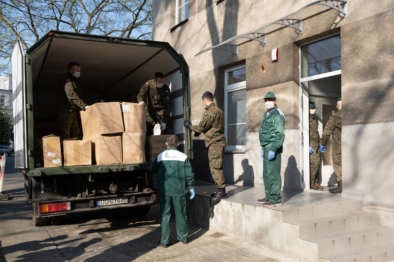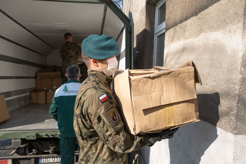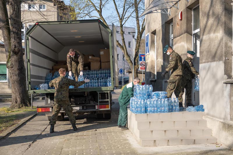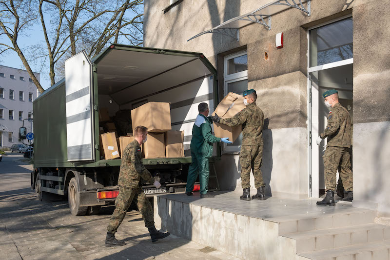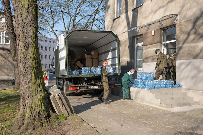 Zebrane przez żołnierzy 12 Brygady Zmechanizowanej artykuły pierwszej potrzeby, w tym środki czystości, trafiły we wtorek do Samodzielnego Publicznego Wojewódzkiego Szpitala Zespolonego przy ul. Arkońskiej w Szczecinie. Wojskowi wszystkie dary przetransportowali do placówki dwoma ciężarówkami.