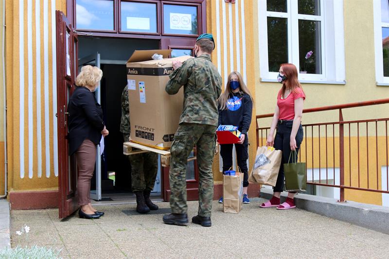 Nowa pralka i paczki ze słodyczami trafiły do Domu Dziecka w Chojnie. To prezent pożegnalny od podchorążych z Akademii Wojsk Lądowych we Wrocławiu, którzy ramię w ramię z zachodniopomorskimi terytorialsami służyli pomocą w walce z epidemią. Wojewoda z kolei przekazał placówce środki ochrony osobistej.