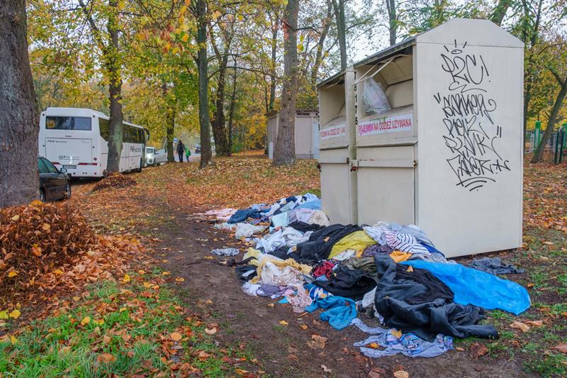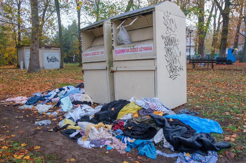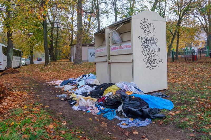 Problem z bałaganem wokół pojemników na odzież używaną wydaje się nie mieć końca. Cały czas otrzymujemy kolejne sygnały od szczecinian zirytowanych walającymi się ubraniami i innymi rzeczami, które miały trafić do takich pojemników, a ostatecznie zostały rozrzucone wokół nich. Tym razem alarmują mieszkańcy okolic ul. Smoczej. Tutaj pojemniki stoją w parku, tuż obok placu zabaw i siłowni pod chmurką. To miejsce, które powinno być czyste i bezpieczne dla najmłodszych, stało się źródłem frustracji mieszkańców.