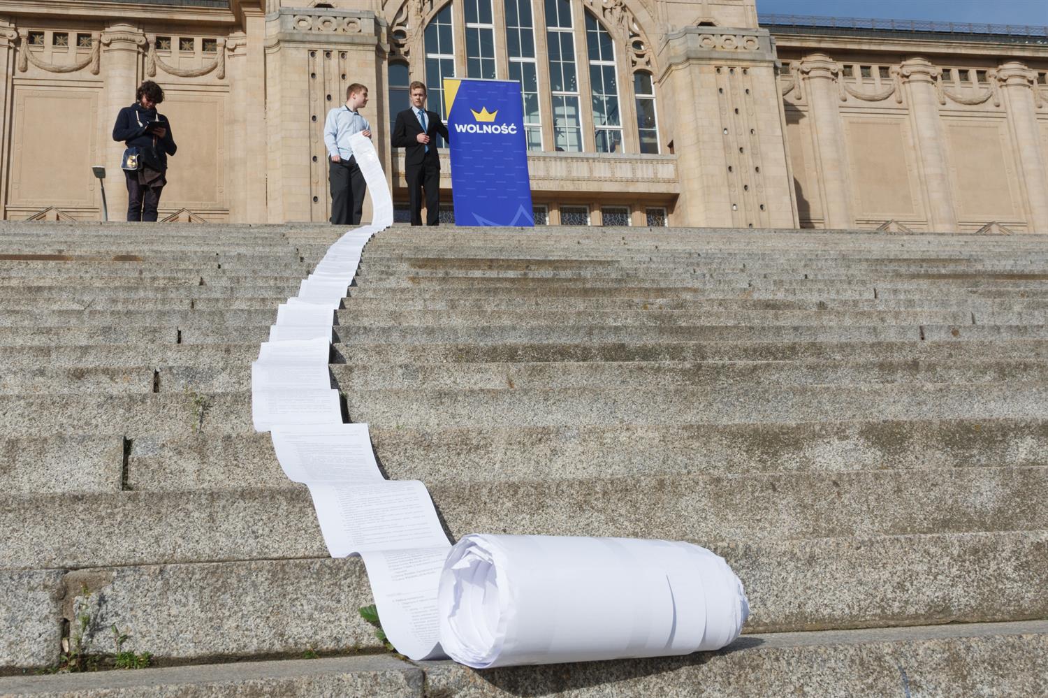 Na zdjęciu:Członkowie partii Wolność zorganizowali happening przeciwko Ministerstwu Edukacji Narodowej.