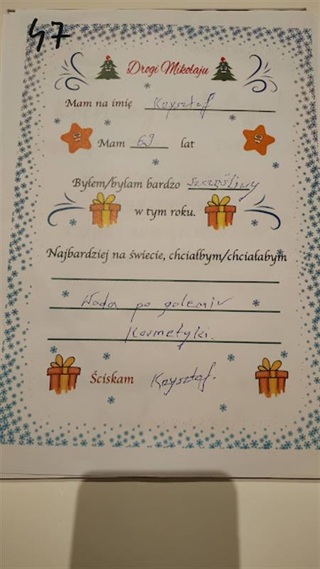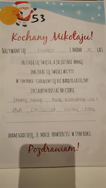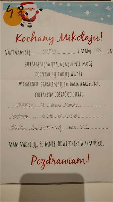 W ubiegłym roku listy do Świętego Mikołaja, pisane przez seniorów z Domu Pomocy Społecznej przy ul. Kruczej, zawierały proste życzenia: znalazły się wśród nich m.in. prośby o książki, świeczki, maszynki do golenia, czajniki, piżamy, a także o słodycze – czyli rzeczy, które dla wielu z nas są codziennością, ale dla seniorów w DPS okazały się marzeniem. Wówczas w akcji wzięło udział ponad 450 osób.