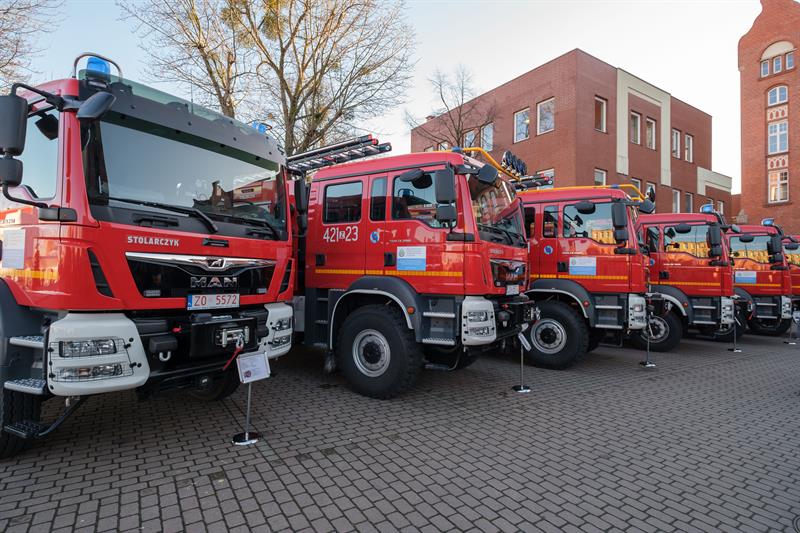 Nowe samochody ratowniczo-gaśnicze zostały przekazane w poniedziałek (14 stycznia) Komendom Powiatowym Państwowej Straży Pożarnej w województwie zachodniopomorskim. Wozy trafiły do Szczecina, Myśliborza, Drawska Pomorskiego, Gryfic oraz Wałcza.