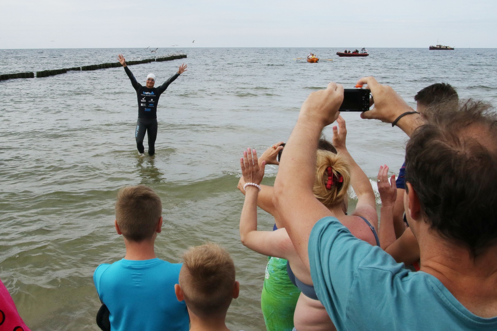 Ponad dobę ma zająć 25-letniemu Sebastianowi Karasiowi pokonanie wpław Bałtyku. W czwartek o g. 17 śmiałek wszedł do wody na wysokości kołobrzeskiej latarni morskiej. Jego celem jest oddalony o 100 km Bornholm.