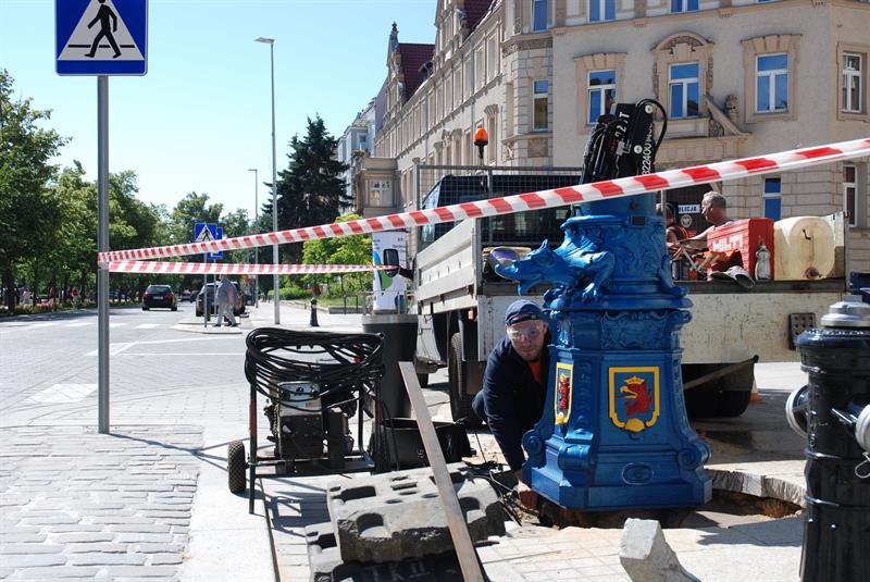 Stoją już wzdłuż deptaka odnowione wcześniej w warsztacie spółki 4 ozdobne hydranty, które mimo zabytkowego wyglądu są w pełni sprawne i pełnią funkcje przeciwpożarowe. Następna w kolejności do ustawienia jest zabytkowa ręczna pompa wodociągowa tzw. „berlinka” pochodząca z połowy XIX wieku, która na czas remontu ulicy zniknęła ze skrzyżowania al. Jana Pawła II i ul. Mazurskiej w magazynie szczecińskich wodociągów.