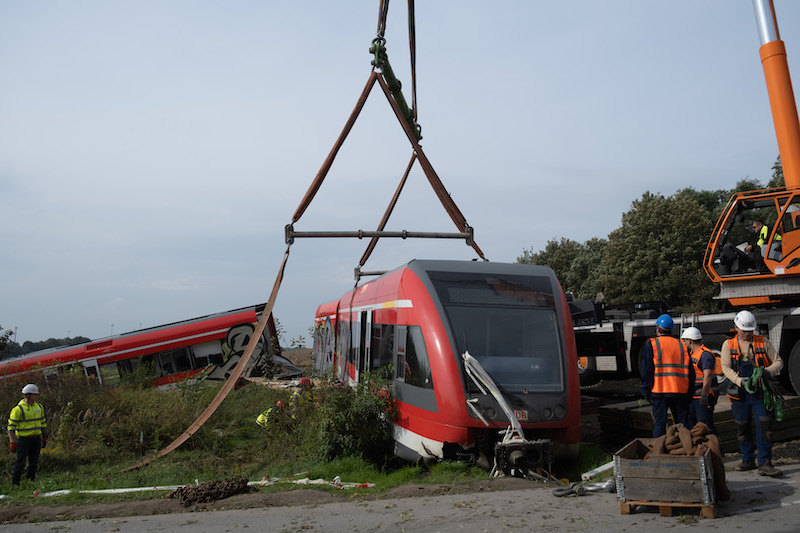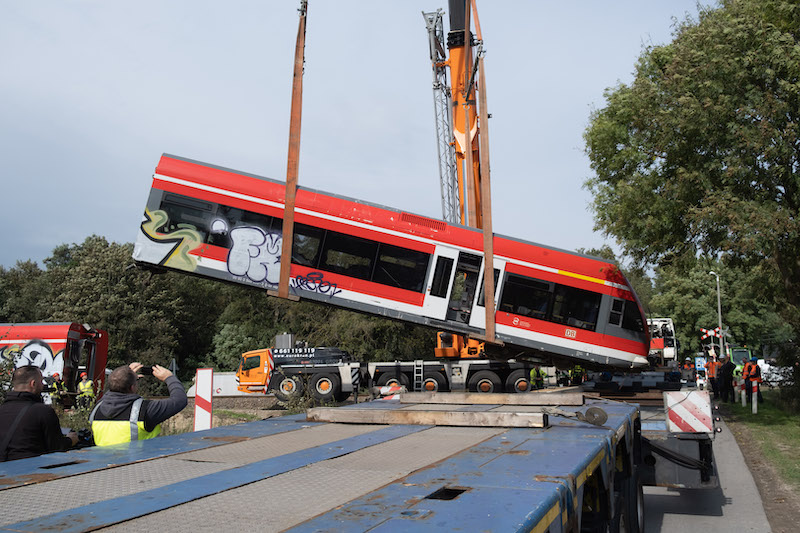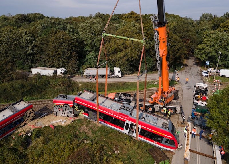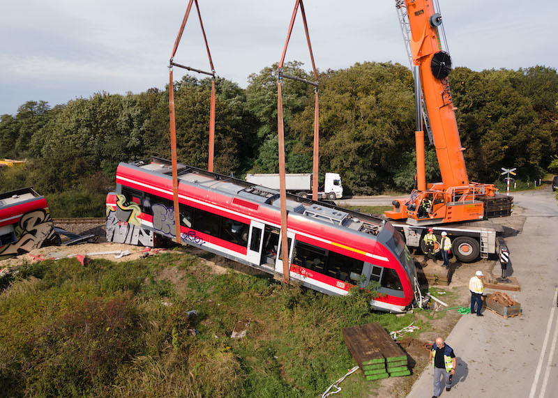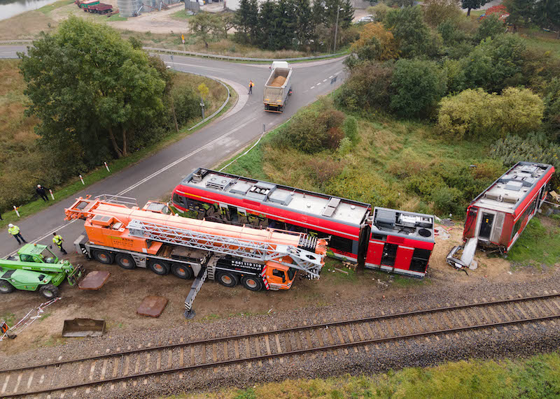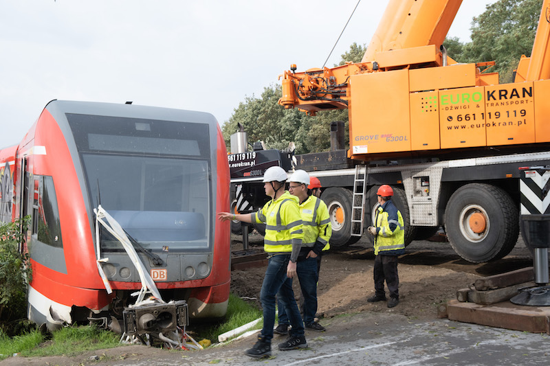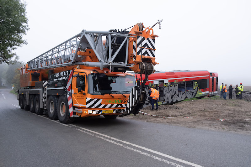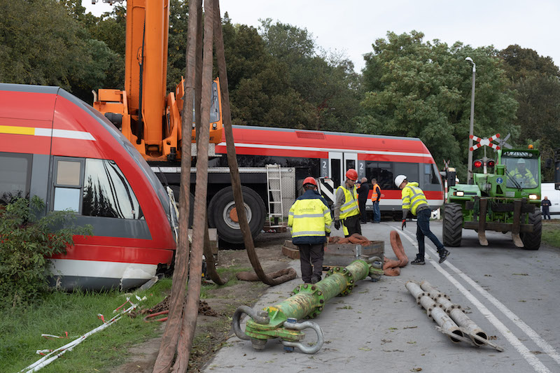 Trwają przygotowania do usunięcia wraku niemieckiego pociągu, który od 30 lipca leży przy przejeździe kolejowym w Kołbaskowie. Po tym, jak uderzył w przejeżdżający przez tory samochód ciężarowy wykolejeniu uległy dwa człony pasażerskie i część silnikowa. Operacja usunięcia wraku może potrwać do wieczora.