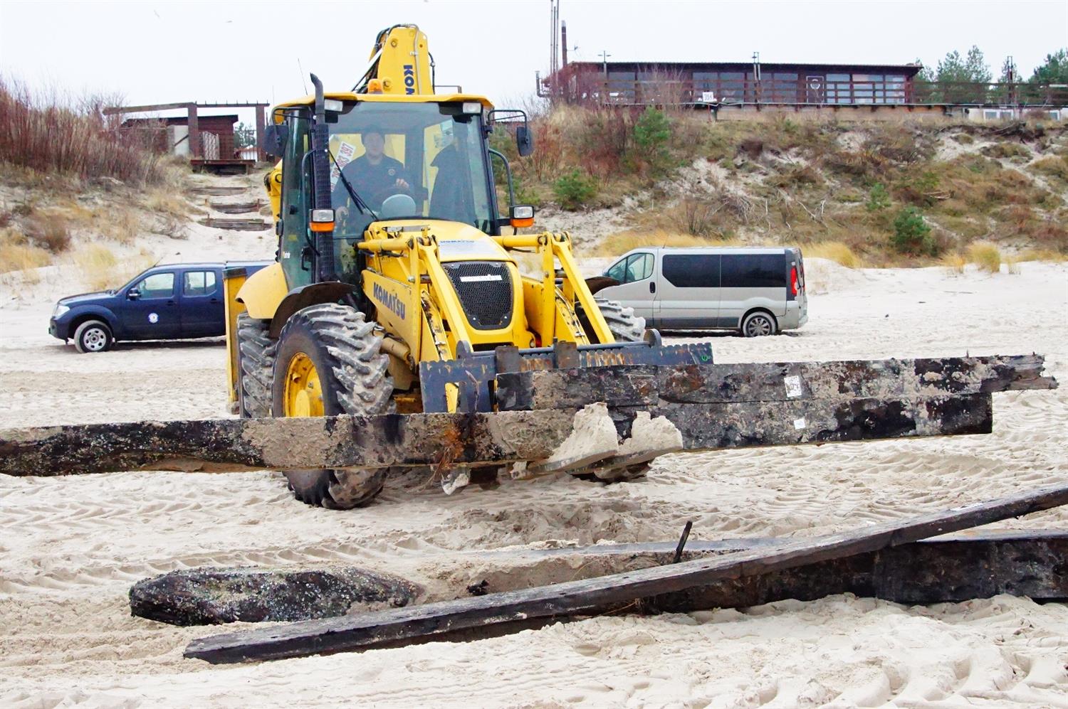 Wszystko wskazuje na to, że wrak statku, wyrzucony przez Bałtyk na plażę w Międzywodziu, jeszcze w czwartek (8 grudnia) znajdzie się w Kamieniu Pomorskim. Pierwszy transport z częściami cennego obiektu wyruszył przed godz. 15, a kolejny szykował się do drogi.