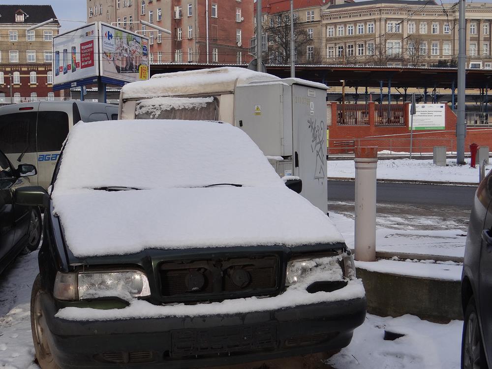 Pobocze naprzeciwko Dworca Głównego PKP w Szczecinie upatrzyli sobie jako parkowisko właściciele takiego oto złomu samochodowego. Ford, wybebeszony i częściowo nadpalony, porzucony pod rozłożystym drzewem nieopodal zejścia na nabrzeże, zdążył zamienić się w śmietnisko. Inny eksponat, tyle że marki volvo bez blach rejestracyjnych stoi zaś dokładnie naprzeciwko w miejscu, gdzie parkować nie wolno. Zastawia wraz z zdezelowaną przyczepą skrzynkę energetyczną. Straż Miejska znów tego nie widzi, choć przeoczyć tego wrakowiska nie sposób. ©℗