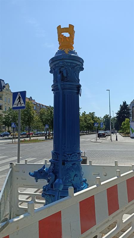W całej okazałości można już podziwiać w Szczecinie kolejną zabytkową pompę. Zakończono prace przy montażu XIX wiecznej „berlinki” na skrzyżowaniu alei Jana Pawła II i Mazurskiej.