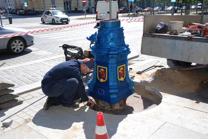 Stoją już wzdłuż deptaka odnowione wcześniej w warsztacie spółki 4 ozdobne hydranty, które mimo zabytkowego wyglądu są w pełni sprawne i pełnią funkcje przeciwpożarowe. Następna w kolejności była zabytkowa ręczna pompa wodociągowa tzw. „berlinka” pochodząca z połowy XIX wieku, która na czas remontu ulicy zniknęła ze skrzyżowania al. Jana Pawła II i ul. Mazurskiej w magazynie szczecińskich wodociągów.