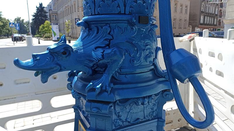 - Rozpoczęliśmy prace polegające na jej ustawieniu, poczynając od przeglądu samej studni i właściwego przygotowania obudowy i granitowego cokołu postumentu pompy - tłumaczy Tomasz Makowski. - Następnie odlew został ustawiony w dwóch etapach - najpierw do połowy wysokości i umocowany. Mechanizm pompy jest przyłączony i sprawdzony, ustawiona jest już także górna część odlewu wraz z wieńczącą całość koroną. Pompa będzie podawać wodę po kilkukrotnym „wajchowaniu” dźwignią.